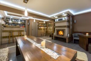 Ciepłe, nastrojowe wnętrze – doskonałe na chwilę relaksu przy ogniu i dobrym napitku.