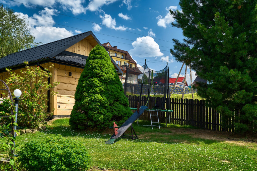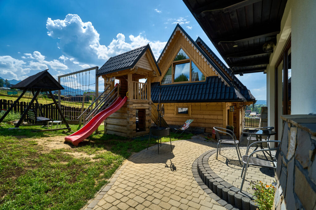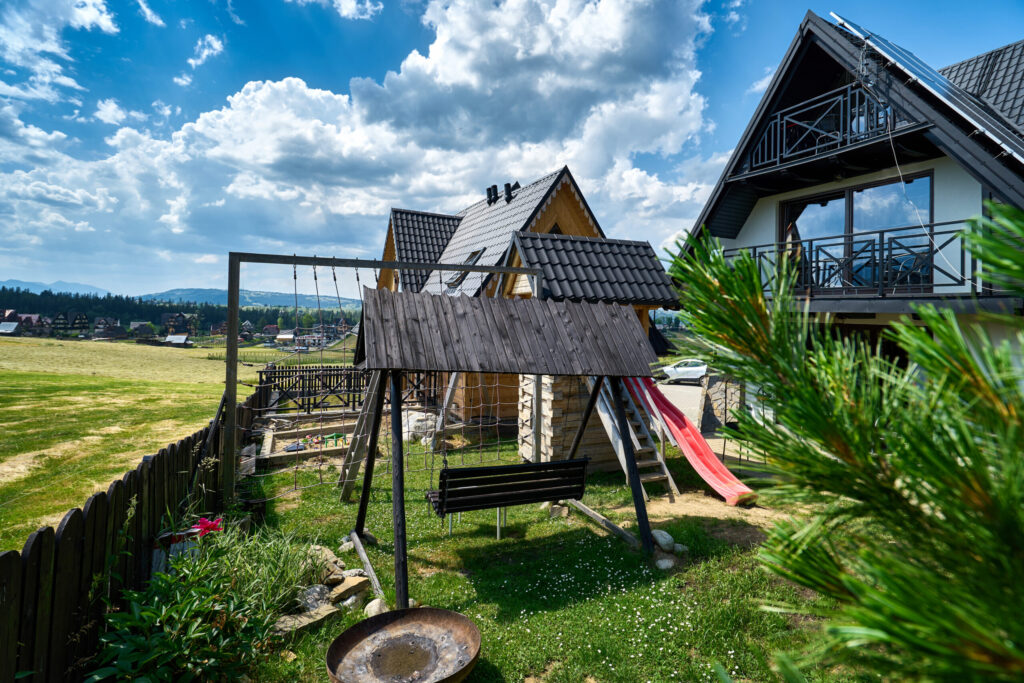 Plac zabaw na świeżym powietrzu – huśtawki, zjeżdżalnie i mnóstwo zabawy dla najmłodszych.
